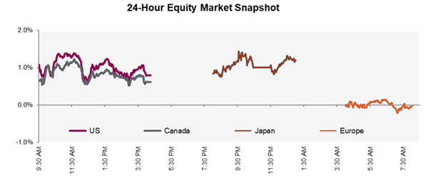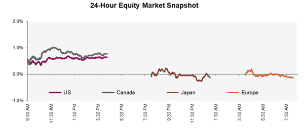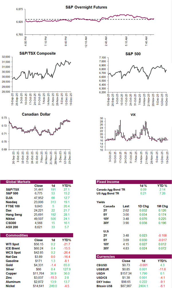 Stocks are mixed this morning with U.S. futures lower, and TSX futures higher. Markets are digesting the final batch of key economic data for the year including delayed quarterly GDP data through September, pushed back by the U.S. government shutdown, and Conference Board consumer confidence numbers due later this morning. Christmas came early for the TSX yesterday, with Canadian equities hitting a new high helping the index close above 32,000 for the first time, led by a strong rally in materials as gold and silver also hit record highs. Stocks in the U.S. also started the week higher, led by a rebound in tech shares that lifted nearly all S&P 500 sectors and pushed the S&P 500 and Dow to within 1% of their recent record highs