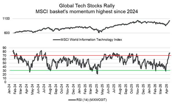 Thanks to Big Tech. The recent rally in equities has been heavily driven primarily by rebound in Big Tech, with the S&P 500 reaching new highs as a handful of mega-cap technology companies account for a majority of the gains. The Mag Seven have added roughly $4 trillion in market value in just weeks, reversing earlier declines and reasserting their leadership in the market. This rise has been fueled less by new fundamentals and more by improved positioning, attractive valuations after earlier selloffs, and confidence in long-term AI-driven earnings growth. However, the rally remains narrow and concentrated, raising concerns about sustainability, especially given ongoing geopolitical risks and elevated capital spending on AI.