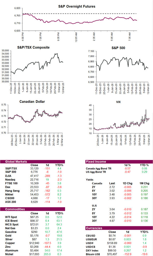 Inflation ripples. Rising oil prices linked to the escalating Middle East conflict could increase costs across Canada’s supply chains and eventually push prices higher for consumers. Because roughly 20% of global oil flows through the Strait of Hormuz, fears of disruption have lifted crude prices and already pushed Canada’s average gas price up about 12 cents this week. Although Canada does not import energy from the Gulf region, global commodity pricing means supply risks there still affect domestic costs. Higher fuel prices are expected to raise freight and transportation expenses, which companies typically pass on to consumers with a lag of several weeks or months. Experts say the effects may first show up in grocery prices, as fresh food supply chains are particularly sensitive to shipping costs, while airlines and other transport-heavy industries could also face profitability pressures if elevated energy prices continue.