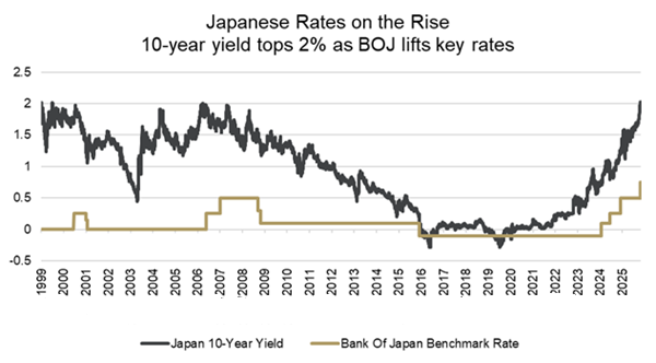 Economic growth accelerated in the U.S. in Q3, with real GDP growing at a 4.3% annualized pace (the fastest in two years) driven by resilient consumer spending, solid business investment and more stable trade conditions. This followed an already-strong 3.8% expansion in the prior quarter. The data, released later than usual due to the government shutdown, highlights continued momentum in the U.S. economy despite policy uncertainty and mixed sentiment among the population. Closer to home, Canada’s economy returned to modest growth in November, with advanced estimates for November showing GDP rising 0.1% after a 0.3% contraction in October, underscoring resilience despite the drag from U.S. tariffs. The October decline, which was in line with expectations, reflected weakness across both goods-producing and services-producing industries, while the November rebound suggests stabilization rather than renewed momentum. Against this backdrop of steady but uncertain growth, the BoC has held its policy rate at 2.25% and signaled that it is likely to keep rates on hold in the near term unless the outlook shifts meaningfully.