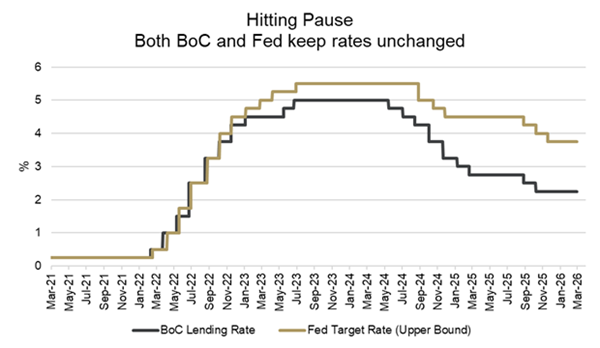 The Bank of Canada is expected to hold its policy rate at 2.25% for a third straight meeting today as policymakers balance rising inflation risks from higher oil prices against weakening domestic economic data. Governor Tiff Macklem and his team are facing increased uncertainty due to the Middle East conflict, which has pushed oil prices far above earlier assumptions and raised concerns about renewed inflation pressures. At the same time, Canada’s economy is showing signs of slowing, including job losses, slowing growth, weak housing activity, and trade-related headwinds from U.S. tariffs. With no updated forecasts this meeting, the central bank is expected to remain cautious and avoid signaling a clear policy direction, while slightly leaning more hawkish due to energy-driven inflation risks. Most economists expect rates to remain on hold for the rest of the year, as officials wait for more clarity on how the oil shock and overall economic conditions evolve. The Canadian dollar is expected to face downward pressure following the BoC decision, with currency traders expected to view the central bank’s cautious stance negatively. Despite Canada’s status as an oil exporter, the currency is struggling to benefit from higher crude prices due to the strength of the U.S. dollar and a widening short-term interest rate gap in favour of the U.S., leaving the loonie vulnerable in the near term.